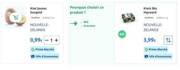 Il distributore sta testando questa soluzione da un mesetto. Ma come vengono identificate le possibile alternative? L'algortimo considera una serie di fattori, dall'origine del prodotto (francese, locale, di importazione...) al suo Nutriscore, dall'Ecoscore alla produzione biologica. Prezzo, marca privata o Mdd invece non vengono considerati. Le alternative sono generalmente un po' più costose dei prodotti inizialmente scelti.