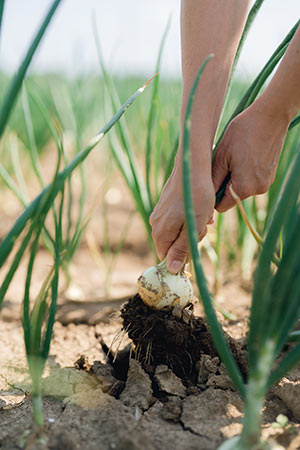Plafoni Andrea riesce a commercializzare il prodotto 365 giorni all’anno grazie alla collaborazione con aziende sudamericane, che coprono il periodo di contro-stagione dove non è disponibile la produzione nazionale, ma è in atto un intenso lavoro di ricerca e sperimentazione per riuscire a garantire continuità con le forniture del prodotto coltivato negli areali del veronese, dove ha sede l’azienda: “Il territorio è sicuramente uno dei punti di forza della nostra attività, in quanto disponiamo di terreni ricchi di gesso e poveri di solfati, che sfavoriscono la formazione di acido piruvico. Inoltre, le concimazioni azotate – al pari di tutti gli input chimici – sono ridotte al minimo, proprio per ottenere un prodotto di altissima qualità. Coerenti con questo percorso effettuiamo tutta la lavorazione a mano, sicuramente più costosa, ma che mantiene intatto il bulbo”.