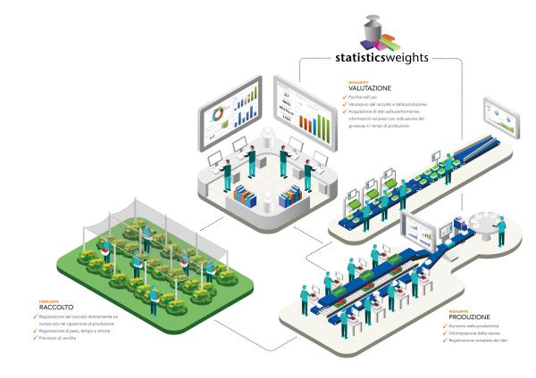Ottimizzazione del personale impiegato e riduzione del giveaway a livelli fisiologici sono i binari su cui poggiano le soluzioni di pesatura TopControl. "Queste permettono una massimizzazione dei profitti di oltre il 50% con un minimo impiego di personale - fa notare Callegari - Dopo un ROI di soli 6-12 mesi si possono notare notevoli risparmi sui costi e un aumento dei profitti. In combinazione con il software StatisticsWeights di TopControl, le nostre soluzioni forniscono una panoramica completa del vostro processo di raccolta e di produzione, tenendo conto delle informazioni sul peso con giveaway, dati di attività e performance".