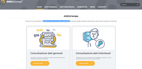 "Assincampo", in dettaglio, consente a tutti i soggetti coinvolti a vario titolo nella predisposizione dei contratti assicurativi agevolati e del Pai (agricoltori, compagnie assicurative, consorzi di difesa, centri di assistenza agricoli, broker, agenti ecc.) di consultare direttamente il sistema Agea/Sian-Sgr per utilizzate le corrette codifiche, i prezzi massimi assicurabili, le rese benchmark e i parametri contributivi (procedura di calcolo dei contributi), disponibili a livello comunale e per prodotti e varietà assicurabili. Un’altra sezione dello strumento, dedicata ai dati assicurativi individuali, consente alle aziende agricole, previa registrazione, la consultazione puntuale - per anno, prodotto, comune - delle proprie rese storiche utilizzate nei Piani assicurativi individuali (Pai) e delle superfici aziendali che sono state oggetto di copertura assicurativa, utili ad orientare le scelte per la nuova campagna assicurativa.