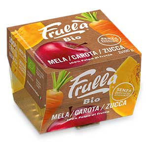 A breve completeranno la gamma i sette gusti in confezioni da due vaschette da 100 grammi: mela, pera, mela/mirtillo, mela/banana, mela/pesca, mela/albicocca, mela/prugna.
