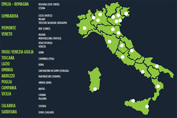 Da oltre 50 anni, Conor è impegnata nella distribuzione di ortofrutta fresca per i canali della ristorazione, Gdo e import-export. Per garantire freschezza e qualità in tutte le regioni italiane, Conor ha ideato e messo a punto - e anche di recente ampliato - una rete di 21 piattaforme logistiche presenti su tutto il territorio nazionale che, con una superficie complessiva di 35.000 mq, distribuisce ogni giorno 3.800 q di ortofrutta fresca tradizionale e biologica, IV e V gamma a tutto il comparto della ristorazione.