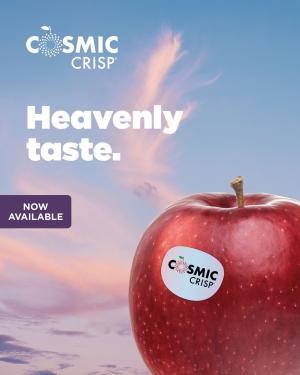 Cosmic Crisp® è nata dall’incrocio delle varietà Enterprise e Honeycrisp ed ha una texture unica, che fa esplodere al primo morso aromi di un’intensità inconsueta. E' - assieme a RedPop® e Giga® - una delle tre nuove mele presentate dai Consorzi VOG e VIP all’inizio del 2021 e che, dopo i primi test condotti durante la scorsa stagione commerciale, quest'anno sono pronte per debuttare con quantitativi più importanti e una presenza più intensa sia in Italia che nei principali mercati europei.