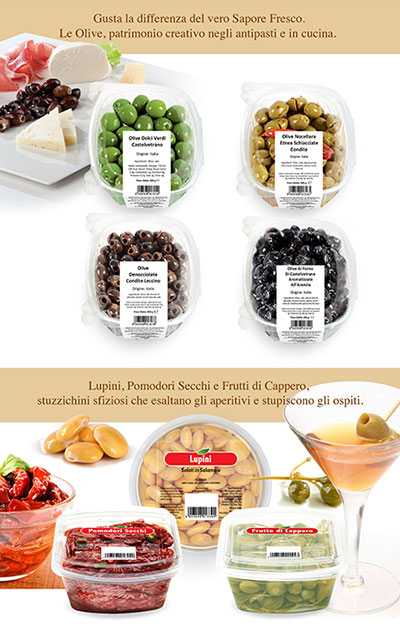 Le referenze scelte e selezionate da Eataly appartengono alla linea dei “Freschissimi“, e comprendono specialità come i lupini (della cui produzione Madama Oliva detiene la maggior quota di mercato in Italia e nel mondo), i pomodori secchi conditi, i frutti di cappero, e, ancora, una selezione di cultivar regionali di olive da tavola tra cui le Leccino denocciolate condite, le olive verdi dolci di Castelvetrano, la Nocellara Etnea e le olive al forno di Castelvetrano.