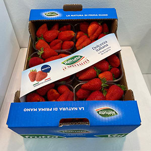 Pronta a fare bella mostra di sé a scaffale, la nuova fragola di Valfrutta Fresco si caratterizza per la sua dolcezza e la prima sensazione assaggiandola è quella della fragolina di bosco. Si presenta con frutti di buona pezzatura, forma conica e colore rosso molto brillante e, soprattutto, è profumata, ricca di vitamina C e molto resistente alla manipolazione, caratteristica che garantisce l’arrivo nel punto vendita di frutti in condizioni ottimali.