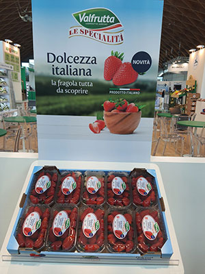 A questo consumatore si rivolge una novità interessante presentata a Macfrut: una fragola premium dal colore rosso vivo, con polpa soda, dolce e su cui costruire un progetto di marca. Il nome della varietà è Elodì, commercializzata da Valfrutta Fresco nella linea Le Specialità.