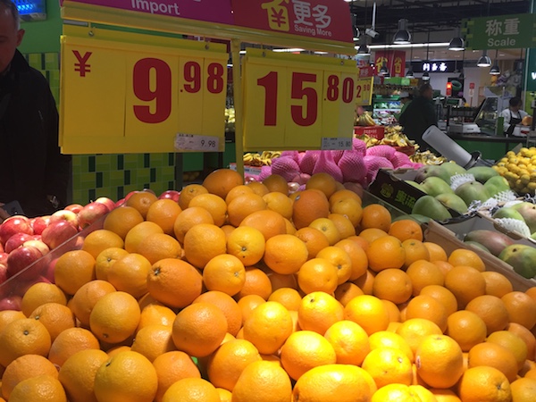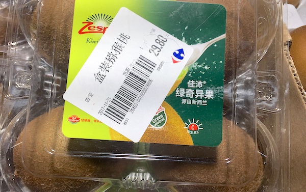 In quantitativi minori, anche confezioni di uva dalla California e dal Perù, che esporta in Cina anche i mirtilli, qualche pack di pere dal Belgio, le mele a marchio Washington Apple, i pluot (o uovo di dinosauro, il nome commerciale dell’ibrido tra susino e albicocco) dalla California, e altro ancora.