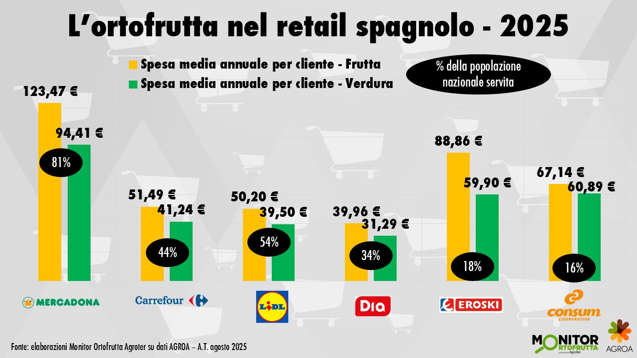 I numeri, alla fine, danno ragione al colosso di Juan Roig, che è oggi di gran lunga il primo retailer in Spagna per spesa media annuale per cliente anche nell’ortofrutta (217,88 €), dove serve bel l’81% della popolazione del Paese.