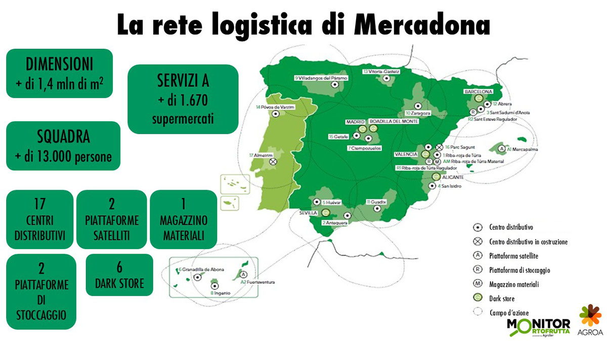 Anche sul fronte logistico, Mercadona ha diverse peculiarità: è stato il primo retailer in Europa a utilizzare casse a sponde abbattibili - sviluppando il proprio pool di casse - e ha puntato su un sistema di ordini fortemente improntato alla digitalizzazione e all’automazione. Oggi si contano ben tre magazzini completamente automatici dedicati all’ortofrutta.