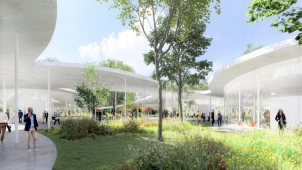 La cifra stilistica di Sanaa è quella delle forme sinuose, in questo specifico caso per creare un'alternanza tra interno ed esterno che valorizzi il verde circostante e la luce naturale. Di conseguenza, verranno piantati alberi, arbusti e piante fiorite. Se poi al piano terra del nuovo edificio è previsto tra l'altro uno spazio comune polifunzionale di oltre 700 mq e destinato a convegni e mostre, oltre a un bar-caffetteria, di contro per il centro medico di circa 900 mq s'immaginano due aree circolari: la prima ospiterà l'accettazione e una sala di attesa mentre nella seconda si troveranno gli studi medici. Le singole aree del piano terra si svilupperanno intorno a una grande piazza centrale, indipendenti tra loro per favorire la privacy.
