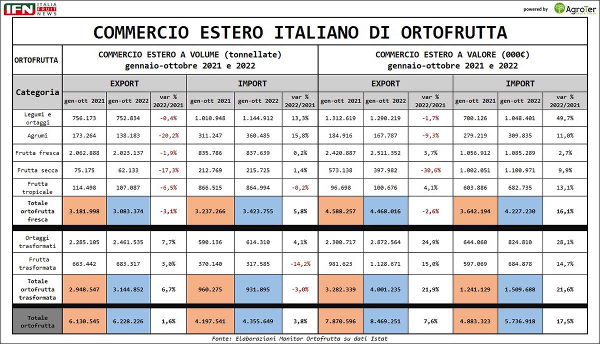 Export ortofrutta 2022, il record mascherato