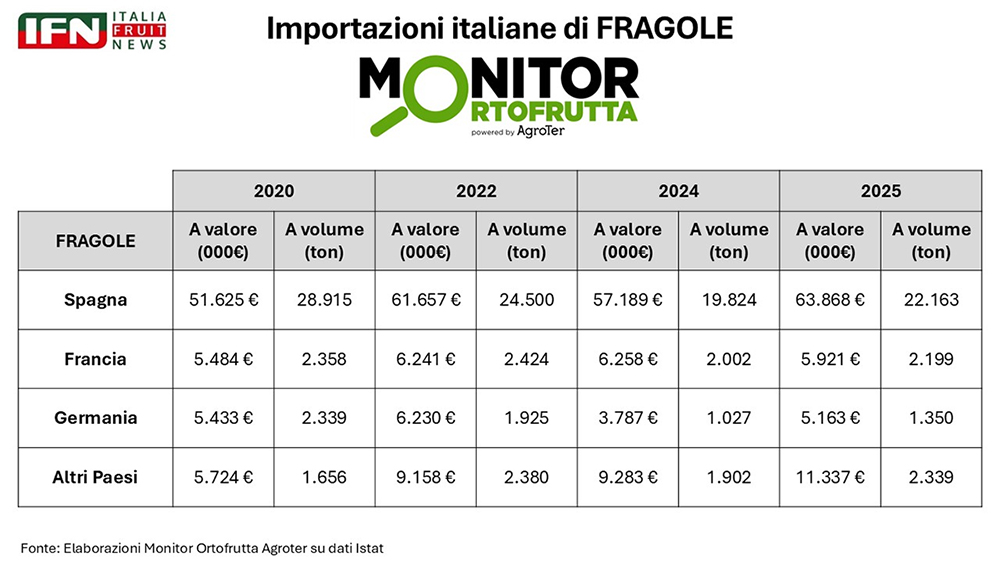 Ad aprire il confronto è stato il direttore di IFN, Roberto Della Casa, che ha richiamato subito l’attenzione sugli scambi commerciali: “Da tempo la fragola italiana non è sufficiente a coprire il fabbisogno nazionale. Siamo importatori netti, anche se si intravede qualche lieve miglioramento: siamo passati da un saldo negativo di 23-24 mila tonnellate nel 2020 a circa 14 mila tonnellate nel 2025. La maggior parte di questo prodotto arriva dalla Spagna, che negli ultimi anni ha ridotto la propria presenza, ma resta comunque il nostro fornitore di riferimento e il principale antagonista sul mercato nazionale”.