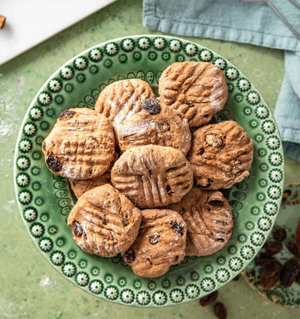 Biscotti speziati con polpa di mela e uvetta120 g di farina integrale