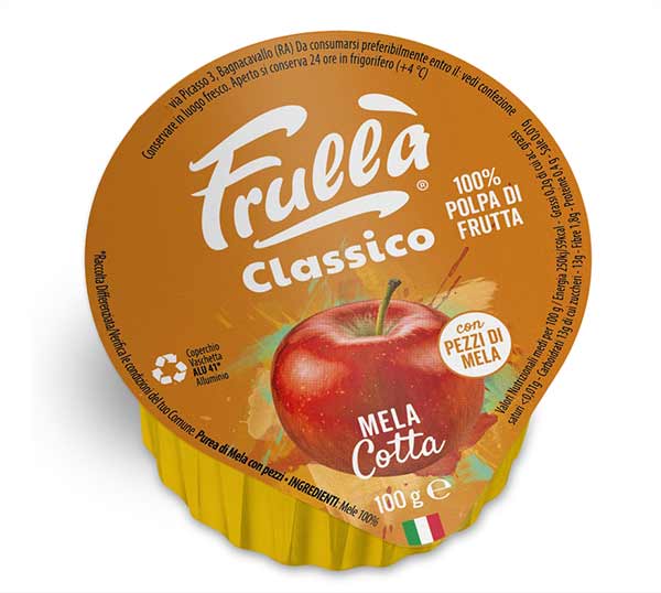 Frullà, lo specialista della frutta frullata, ha nell’innovazione di prodotto una delle proprie carte vincenti, per proporre al mercato prodotti sempre di qualità e, spesso, anche originali. È il caso di Frullà Classico Mela Cotta, nella comoda vaschetta di alluminio da 100 grammi, completamente riciclabile. Polpa di mela cotta, frullata e in pezzi, preparata con frutti selezionati e genuini, senza conservanti, senza zuccheri aggiunti e naturalmente senza glutine. Pronta per l’uso, può essere utilizzata anche come ingrediente per gustosi biscotti e crostate (seguono ricette). Per garantire l’alta qualità della materia prima, la frutta proviene esclusivamente da un Consorzio di produttori emiliano-romagnoli, di cui fa parte Natura Nuova, l’azienda romagnola titolare del marchio Frullà, che da oltre dieci anni identifica i prodotti a base di frutta fresca frullata, mai da concentrato.