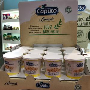 I Comodi della Vincenzo Caputo sono stati presentati il mese scorso a Marca, al momento l'impresa campana li propone con il proprio brand, ma l'obiettivo è di coinvolgere i retailer verso queste referenze dal pack sostenibile. "Il prezzo è lo stesso dei barattoli di plastica, nonostante il packaging in carta abbia un costo superiore - sottolinea Santucci - La comodità di consumo è un aspetto di valore per questa gamma: le confezioni si aprono facilmente e possono essere richiuse senza problemi. Inoltre il formato è adatto per un consumo on the go, con la possibilità di essere riposto nel porta bevande dell'auto".