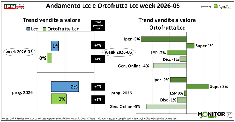 Week 5: +80% a volume, mentre l’ortofrutta Lcc arranca ancora (-4%)