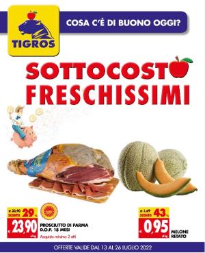 C'è tanta ortofrutta in offerta nell'ultimo volantino di Tigros, con le promozioni che sono iniziate ieri e andranno avanti fino al 26 luglio. Il volantino si apre proprio evidenziando il sottocosto sui freschissimi e un classico abbinamento del momento: prosciutto e melone. Il Parma Dop è scontato del 29% mentre il retato del 43%, con una proposta sotto la soglia dell'euro, più precisamente 0,95 euro al chilo. Un prezzo davvero aggressivo in questa campagna dove i costi produttivi della referenza sono aumentati parecchio. Come documentato da Ismea e dal Monitor Ortofrutta di AgroTer (clicca qui per l'approfondimento) il costo di produzione del Melone mantovano IGP aumenterà in questa campagna del 25%, passando da circa 0,79 euro/chilo a 0,99 euro/chilo.