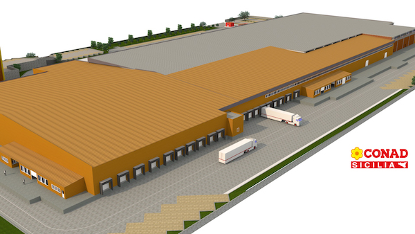 Attualmente, Conad Sicilia ha un network logistico composto da sette siti logistici per quasi 67mila metri quadri di superfici per alimentare secco, a temperatura controllata e surgelati in due poli: Palermo e Modica (Ragusa). A Catania, invece, ha sede il deposito primario per il flusso dei surgelati. Per competere nei prossimi anni la cooperativa siciliana punta su un nuovo assetto del network distributivo: i 12 milioni di euro getteranno le basi per uno sviluppo focalizzato sul servizio e l’integrazione della supply chain. Alla fine di questo percorso di investimenti e di potenziamento, il network sfiorerà una superficie di 90mila metri quadri (sopra il rendering) con una capacità di servizio di oltre il 40% in più e ricadute sul tessuto economico, generate dall’indotto.