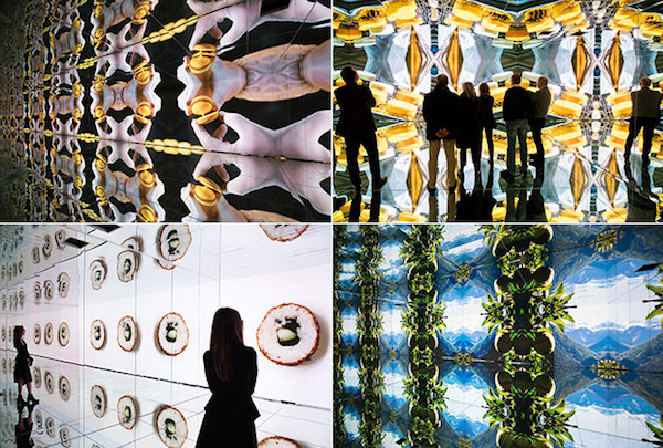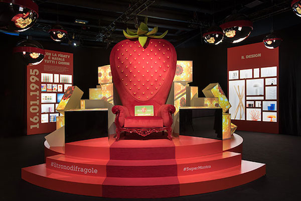 A coinvolgere il “visitatore-spettatore”, in particolare, sono stati l’installazione di carrelli “volanti” e la “stanza delle meraviglie” con gli oggetti iconici esposti per ricostruire le tendenze e l’atmosfera del passato, lo zootropio che riproduceva la preparazione delle lasagne, il trono a forma di fragola dove era possibile scattare foto e selfie, la stanza caleidoscopica (nelle due foto sotto).