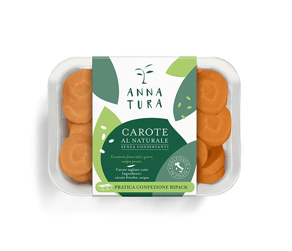 Per fare ciò, abbiamo adottato un packaging in grado di trasmettere questi concetti in maniera chiara e semplice, quindi trasparente. Si tratta del nuovo Bipack, una referenza già disponibile ma che abbiamo recentemente rinnovato: la materia prima può essere vista in tutta la sua consistenza e colore; mentre la fascetta richiama nella grafica la freschezza e la naturalità del prodotto; oltre alle informazioni chiave (coltivato in Italia, provenienza regionale, senza conservanti e senza condimenti, da materia prima fresca).