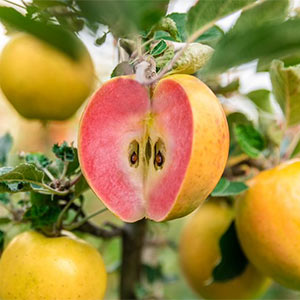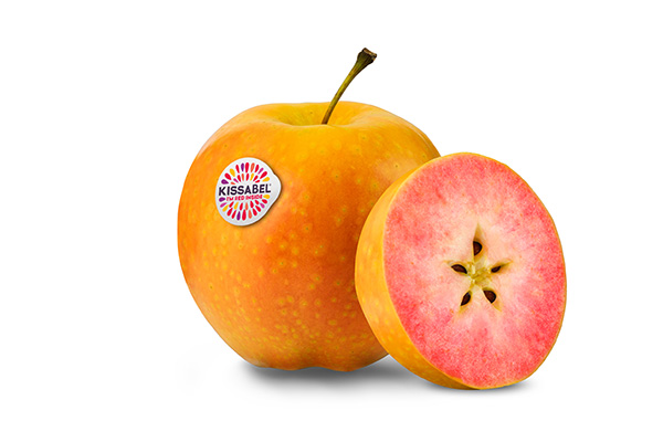 Kissabel® Orange e Kissabel® Jaune sono due varietà di mele a polpa colorata proposte in Europa dai partner del progetto Ifored. La prima si caratterizza per una pigmentazione tendente all’arancione/rosa della buccia, per la polpa di colore rosa intenso e per il gusto saporito e rinfrescante, la seconda per la buccia gialla, la polpa rosa e il gusto armonico.