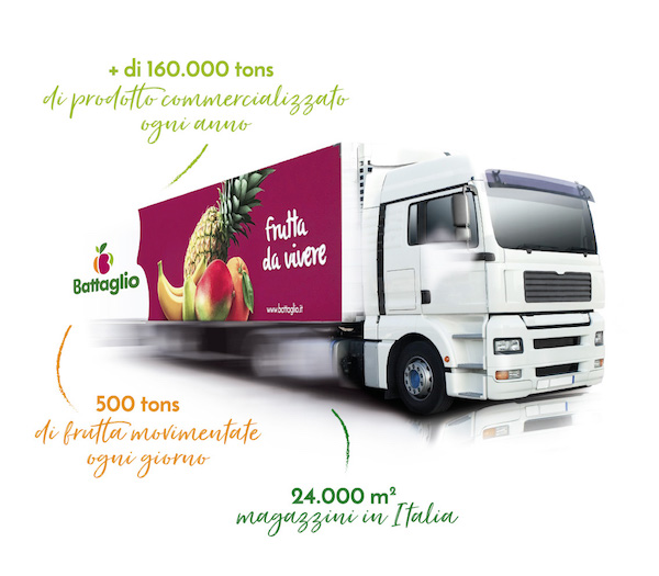 A proposito di numeri, il presidente Luca Battaglio ha ricordato i 24mila metri quadri complessivi dei due magazzini con celle di conservazione e maturazione banane nei Centri agroalimentari di Torino e Roma (quest'ultimo in fase di ampliamento) dove l’azienda dispone di altrettanti posteggi, ma soprattutto le 160mila tonnellate di frutta esotica e di contro-stagione movimentate (59mila tonnellate di banane, che valgono poco meno di un terzo del fatturato complessivo, 29mila di agrumi, 15mila di ananas, 6.500 di pere, 5.200 di meloni, 4.500 di frutta esotica e poi fragole, kaki, kiwi e altre tipologie di frutta e verdura), per l'80% destinate alla grande distribuzione e per il 20% ai Mercati agroalimentari.