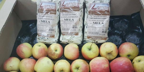 “La mela rossa viene frullata e miscelata al 20% alla semola di grano duro materano per dare forma a un'eccellente pasta alla mela – spiegano dal pastificio – per un piatto salutistico e innovativo, da gustare rigorosamente senza sale, in compagnia di un trito di mela rossa e un filo di olio extravergine di oliva”.