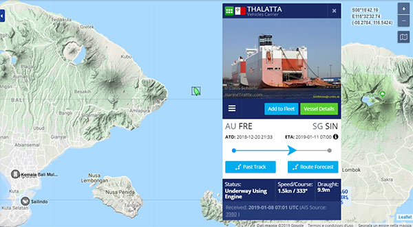 La posizione della nave alla data di ieri, 10 gennaio 2018