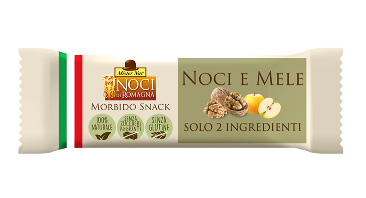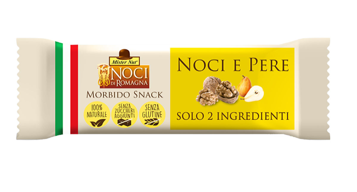 “Tutti i prodotti sono realizzati nei nostri stabilimenti – specifica Annibali – e per le barrette utilizziamo solo due ingredienti: Noci di Romagna della filiera italiana abbinate a frutti sempre 100% italiani come pere, mele e fichi”.
