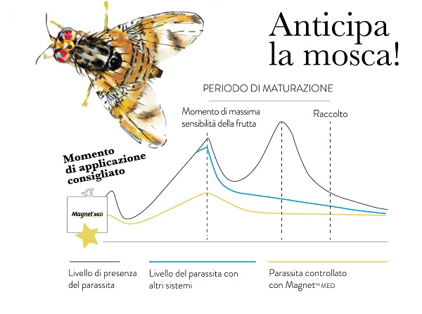Magnet™ Med garantisce la sua massima efficacia per almeno 6 mesi ed è progettato per essere installato in maniera preventiva, precedentemente al momento di massima sensibilità della frutta all’attacco della mosca, difendendo l’intero raccolto. Dopo 10 anni di utilizzo di Magnet™ Med nella culla del Mediterraneo, in Sudafrica e in America Latina, cresce a ogni stagione il numero di produttori di frutta che ripongono la loro fiducia in questo sistema per mantenere i loro raccolti liberi dalla mosca mediterranea. Come confermano studi scientifici indipendenti, Magnet™ Med è molto più efficace dei sistemi a trappola.