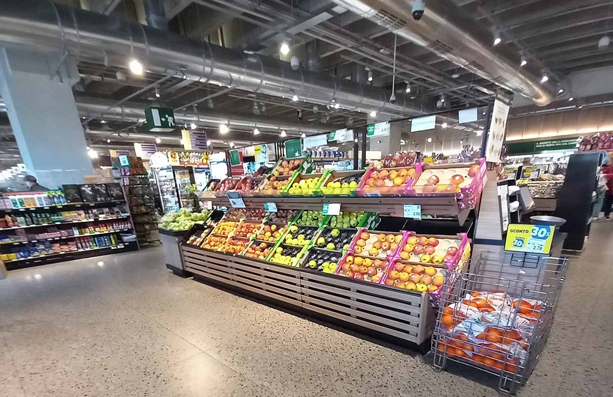 Gli assortimenti di frutta e verdura fresche proposti soddisfano le diverse esigenze, con ampi focus e prestazioni per quelli stagionali, come ciliegie, pesche e albicocche. Ben visibile l'area dedicata ai prodotti biologici, caratterizzati da un assortimento essenziale, mentre si dedica uno spazio molto ampio alla frutta secca, grazie anche all’utilizzo di capienti isole. Per quanto riguarda i prodotti servizio di IV-V gamma, li troviamo esposti nel lungo banco refrigerato, che accoglie, fra l’altro, gran parte dei prodotti confezionati di I gamma sia di frutta che di verdura. L’assortimento dei prodotti servizio è tutto sommato soddisfacente, senza infamia e senza lode.