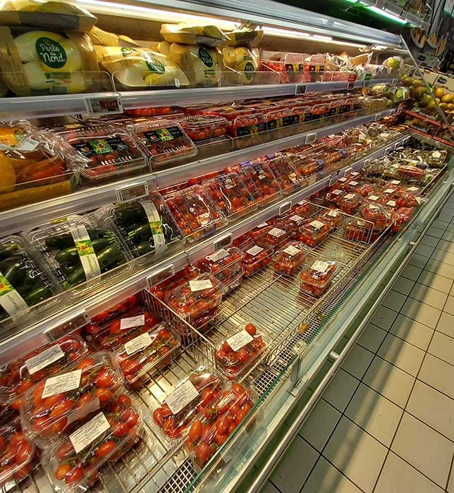 In generale il reparto orofrutta dell’IperTosano è in linea con quanto ci aspettavamo: la parola d’ordine è prezzi bassi, ma la qualità è tutto sommato buona e c’è un assortimento ampio e profondo, anche se non al livello di altri reparti (vedi carne e beverage), che offrono referenze introvabili in buona parte delle insegne della Gdo italiana. Non a caso il negozio è sempre molto affollato e questo aiuta nel mantenere buone rotazioni, con indubbi benefici per la freschezza dei prodotti.