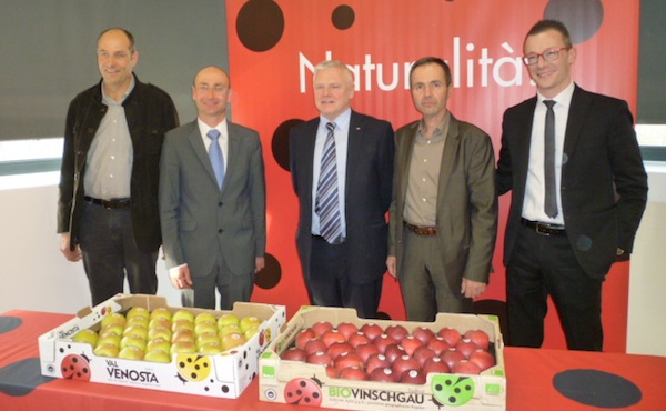 Due coccinelle, è stato sottolineato, che simboleggiano anche la felice convivenza di fattori distintivi: “il territorio d’origine dei nostri prodotti ha due lingue - ha aggiunto Wielander - due culture e due sono anche i colori delle varietà tipiche. Il nostro manifesto aziendale è sintetizzato da due parole, naturalità e qualità: l’importante, per noi, è che la mela sia buona e sincera”.