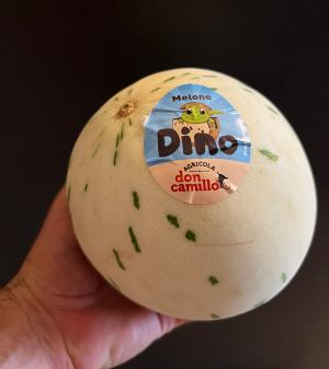 I primi di agosto sono andato a fare la spesa all'Ipercoop di Cesena assieme ai miei figli. Ho lasciato scorrazzare le due piccole pesti per il reparto ortofrutta e sono tornate al carrello con il loro bottino: il melone Dino.