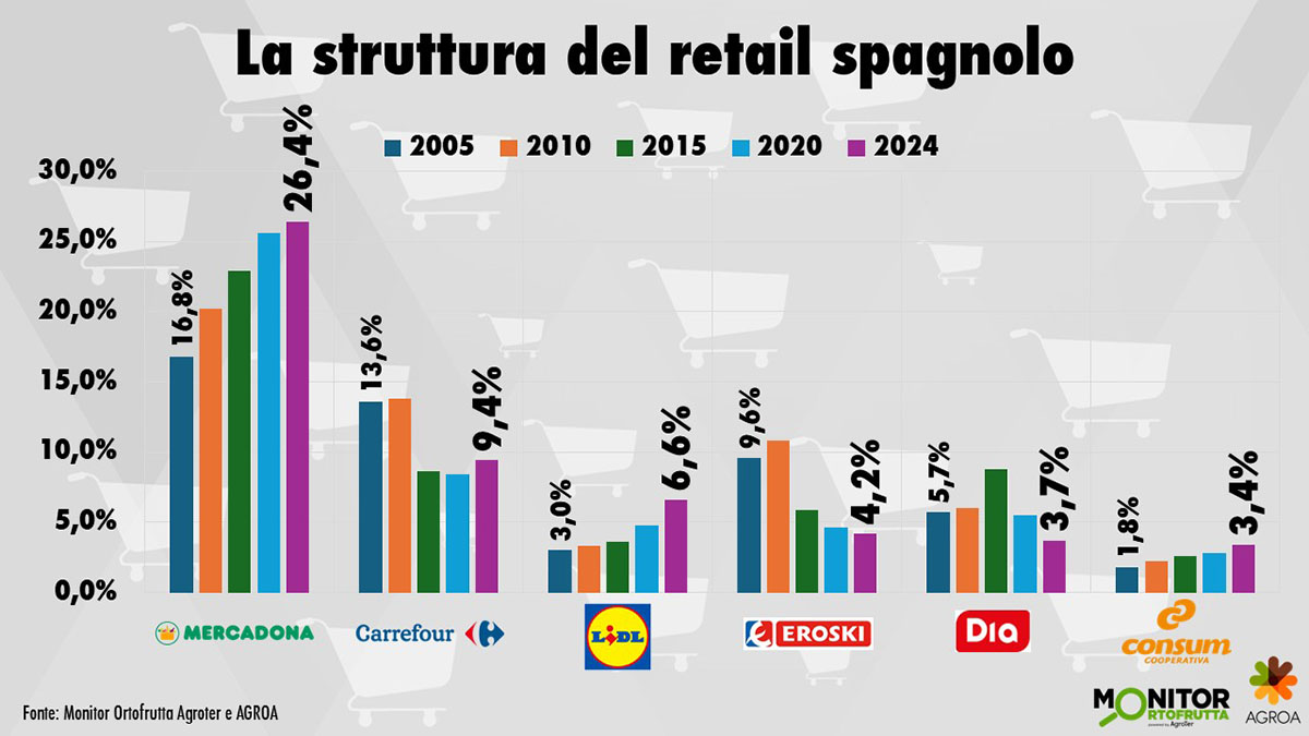 Non sorprende quindi che Mercadona abbia progressivamente scalzato la concorrenza. Nel 2005 il leader di mercato era ancora Carrefour – con Dia integrata – ma il declino degli ipermercati ha finito per penalizzare sia Carrefour che Eroski. Dall’altra parte, Mercadona ha continuato a crescere fino a diventare l’attuale numero uno in Spagna, con una quota di mercato di oltre il 26%. Solo Lidl, con il suo modello discount, e Consum, con il suo formato di prossimità, sono riusciti a tenere un po’ il passo.