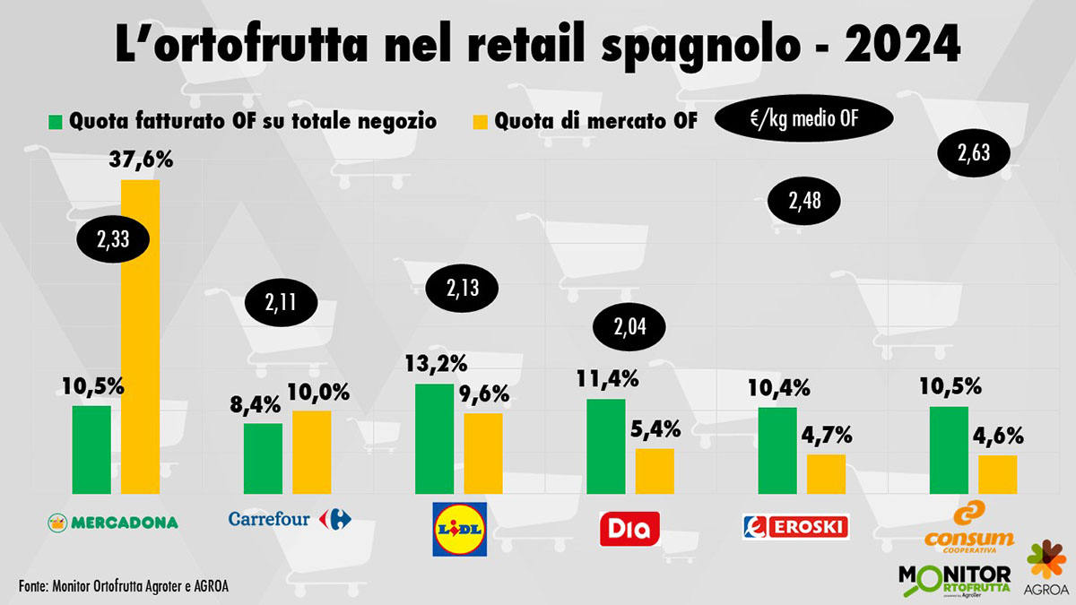 Il parallelismo tra Italia e Spagna affiora fin dalle origini. Anche nella penisola iberica, infatti, i primi supermercati compaiono alla fine degli anni Cinquanta. Mercadona, arriva invece nel 1977, dallo sviluppo di alcuni punti vendita che in origine erano le macellerie di famiglia dei genitori di Juan Roig, le Cárnicas Roig. Da lì in poi la crescita è stata inarrestabile: il fatturato è aumentato del 375% in vent’anni, un risultato praticamente unico nel panorama europeo della Grande distribuzione organizzata. Oggi Mercadona è il decimo retailer nell’Europa occidentale per fatturato, pur essendo presente solo in due Paesi, con un fatturato per negozio da primato.