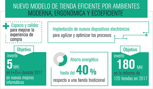 "Il nuovo format migliora e ottimizza l'esperienza di acquisto dei nostri padroni, vale a dire dei nostri clienti", spiega la catena. "Quest'anno investiremo 180 milioni di euro nel concept, rinnovando 125 negozi sparsi in tutta la Spagna".