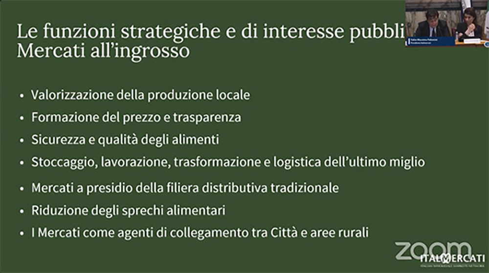 “La frammentazione del settore dei mercati all’ingrosso in Italia ha portato molte di queste strutture a perdere rilevanza e strategicità per il Paese e ciò ha fatto perdere la visione d’insieme del settore. La rete di Italmercati nasce proprio dalla sentita esigenza di porre rimedio a tale frammentazione, per fare sistema e lavorare in sinergia con medesime caratteristiche e visione futura”, ha dichiarato il Presidente di Italmercati, Fabio Massimo Pallottini. “Per uno sviluppo del settore, è fondamentale infatti che le azioni politiche investano nei mercati all’ingrosso strategici del Paese: la nostra proposta cerca di individuare un numero - magari ridotto - di Mercati strategici che garantiscano un sistema più efficace ed efficiente, non tralasciando i principali requisiti alla base di queste strutture: garantire ai consumatori servizi di tracciabilità e sicurezza alimentare”, ha concluso il Presidente Pallottini.