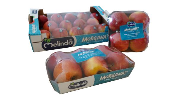 Morgana è una mela club, contraddistinta da un brand che, come abbiamo detto, richiama la caratteristica distintiva della mela: la succosità. Logo e colore sul packaging enfatizzano proprio un'esplosione di succosità e freschezza.