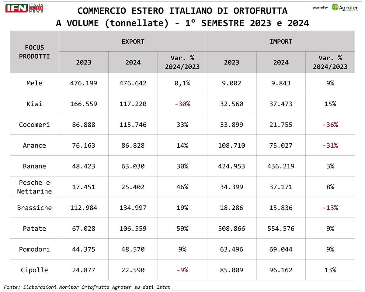 Dalle analisi del Monitor Ortofrutta di Agroter sui dati Istat, il giro di boa appare favorevole per il comparto ortofrutticolo italiano, con una crescita nel volume dell’esportazioni pari al 6%, mentre a valore è più contenuta (+3%).
