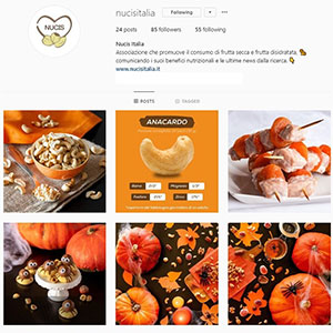 Le novità, però, non finiscono qui! Nucis, infatti, rafforza e amplia anche la sua presenza sui social network. Già presente su Facebook con la pagina Nucis Italia – Frutta secca è benessere, che conta oltre 35.700 fan, da ottobre è anche su Instagram con l’account ufficiale @nucisitalia (in foto sotto). Qui, grazie alla presenza di coloratissimi scatti ad hoc, preziosi consigli nutrizionali e sfiziose ricette descritte step by step nelle stories, si potrà ammirare anche il lato più trendy e lifestyle della frutta secca ed essiccata.