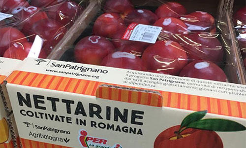Una iniziativa commerciale che sta riscontrando un particolare successo è “Spicchi di Vita”, attraverso la quale il Consorzio Agribologna devolve alla Comunità di San Patrignano il 10% del prezzo riconosciuto in acquisto da Ortofin (Gruppo Finiper) alle nettarine di Zavoli, in vendita nei negozi di Iper, La grande i. “Ortofin ci sta dando una mano a valorizzare le nostre cassette con packaging dedicato a Spicchi di Vita - conclude - Questo progetto solidale proseguirà, ora, per tutto agosto e settembre”.