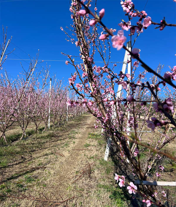 La fioritura, spiega, è in evidente anticipo rispetto alle tempistiche usuali. “Siamo almeno tra una settimana e dieci giorni avanti: sono già in piena fioritura le varietà che matureranno a giugno e sono in fase di bottone rosso quelle di luglio. Restano ancora chiuse le tardive, ma circa il 70% della superficie è già in questa fase, chiaramente accelerata dalla grande disponibilità idrica che sta dando impulso alle piante”. Non solo: “Stiamo assistendo anche a una fioritura abbondante, grazie a un soddisfacimento delle ore di freddo superiore di circa il 15% rispetto all’anno scorso”.