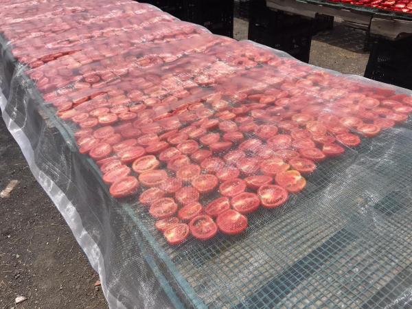 Il lavoro parte dalla scelta varietale. "Per ottenere un buon pomodoro essiccato serve un frutto con molta polpa, abbiamo quindi piantato la varietà Grandimat - illustra l'imprenditore siciliano - Nel pomodoro secco si perde il 90% del peso iniziale e questa varietà, coltivata a pieno campo, ci consente una resa superiore rispetto al pomodoro in serra o altre tipologie. Il prodotto viene poi raccolto a mano, in più passate, e portato in magazzino dove è lavato, tagliato a metà, si aggiunge circa l'8% di sale marino e poi il prodotto è posizionato sulle reti per l'essiccazione e coperto con un apposito telo".