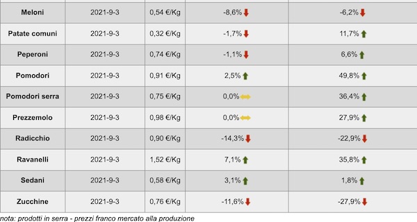 La settimana centrale del mese è stata caratterizzata da andamenti variabili ma prezzi all'origine tutto sommato stabili per l'ortofrutta: è quanto emerge dal report Ismea riferito al periodo dal 13 al 19 settembre. Per le colture orticole estive di pieno campo, la cui campagna volge al termine, il mercato ha mostrato vendite regolari e quotazioni poco mosse sulla maggior parte delle piazze monitorate. Solo per le zucchine i listini hanno teso al ribasso a fronte di disponibilità presenti sui mercati in aumento unitamente ad una costante richiesta. Si conferma positivo l'andamento degli scambi per i pomodori: l'offerta in graduale assottigliamento ha intercettato una domanda vivace con quotazioni che hanno mostrato ulteriori incrementi. In calo invece i prezzi dei meloni in virtù delle minori richieste pervenute.
