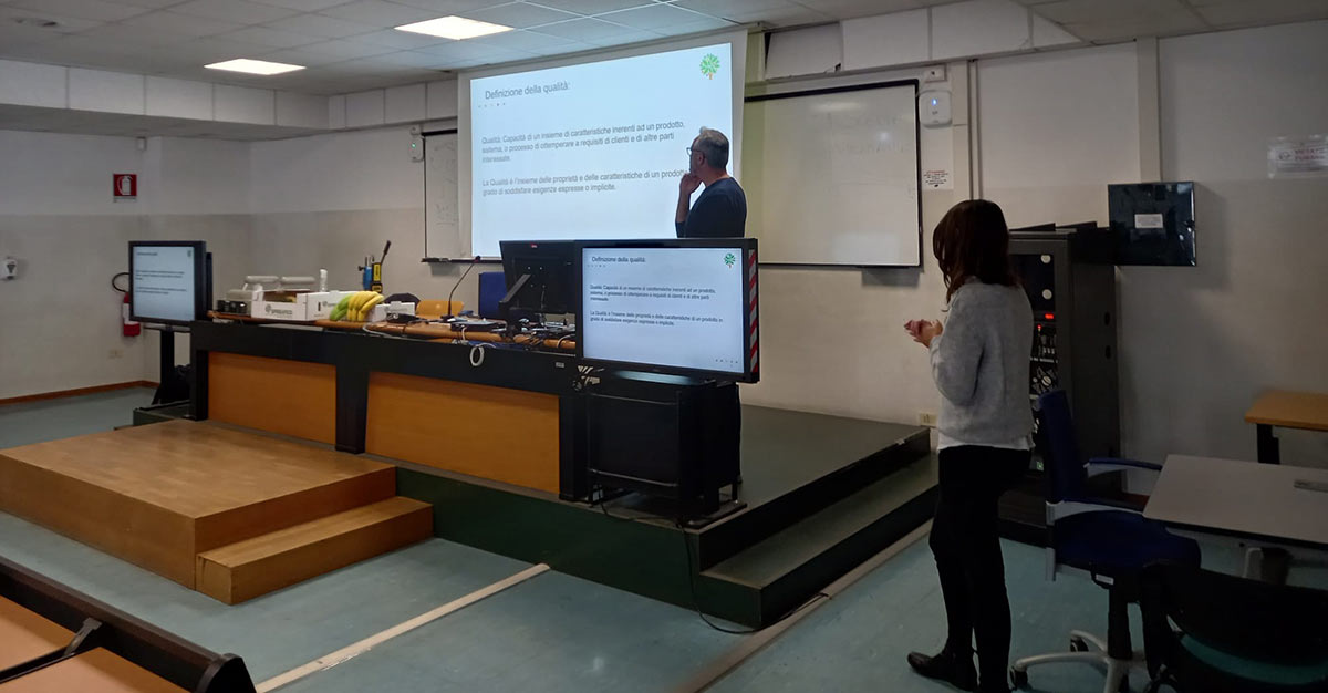 Invitati direttamente dal professore Adamo Domenico Rombolà, i due colleghi dell’ufficio assicurazione qualità dell’azienda hanno raccontato la realtà Spreafico agli studenti del secondo anno mostrando loro le tecniche, i metodi e gli aspetti più interessanti e pratici del controllo qualità della materia prima post raccolta.