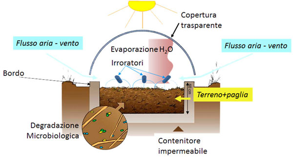 Come funziona? Il principio di Phytobac è molto semplice. Le acque contaminate passano attraverso il Biomix, un substrato naturale che le degrada. L'acqua invece evapora naturalmente in pochi mesi. A fine stagione non ci sono più residui contaminati grazie al lavoro di funghi e batteri presenti nel Biomix.