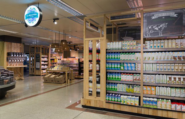 La formula di El Corte Inglés vede la presenza di personale specializzato per assistere e consigliare i clienti, in un ambiente confortevole dove il legno delle strutture espositive (scaffali, cesti, botti, tavoli, ecc.) gioca un ruolo primo a livello visivo, così come l'assortimento di origine nazionale (80% sul totale), prevalentemente regionale e locale per quanto riguarda i prodotti freschi e freschissimi.