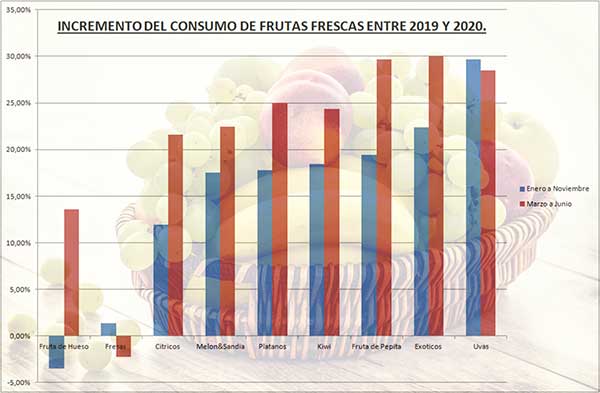 I dati hanno confermato le sensazioni dei primi mesi di pandemia, dove si osserva che il consumatore, di fronte al problema di salute sorto così velocemente, ha concentrato la sua attenzione verso prodotti più naturali come la frutta.