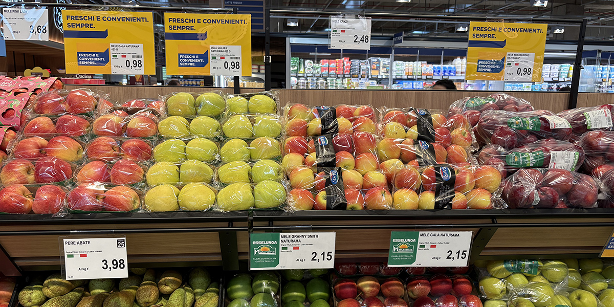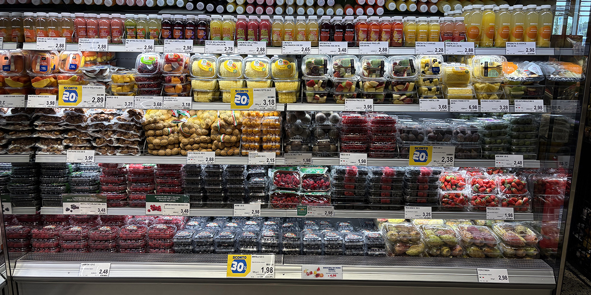 Accanto all’ortofrutta tradizionale trovano spazio le “nicchie” di Esselunga. In evidenza, il murale refrigerato dedicato ai piccoli frutti e, soprattutto, l’ampia selezione di frutta ad alto contenuto di servizio, organizzata come una vera e propria categoria pensata per la praticità di consumo: la cosiddetta frutta snack.